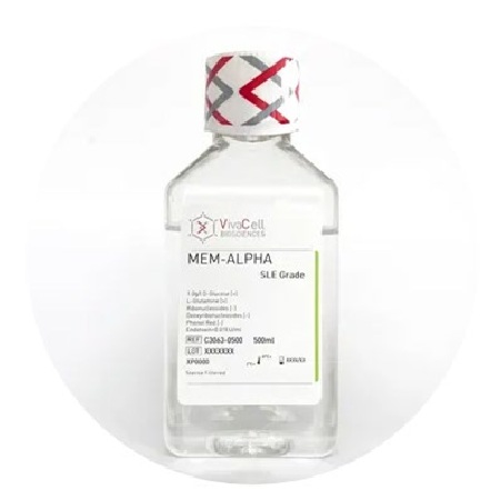 Minimum Essential Medium Alpha (MEM-α) with L-Glutamine, w/o Ribonucleosides, Deoxyribonucleosides, w/o Phenol Red, SLE Grade. 500 ml. [+4 deg C]